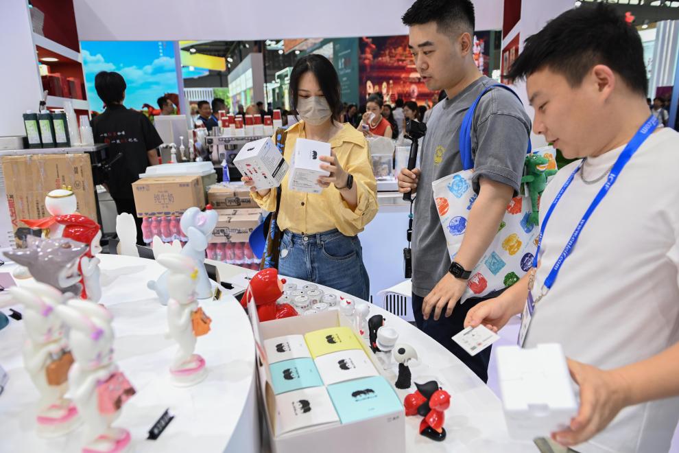 5月23日,人们在文博会“文创中国”展区选购文创产品。新华社记者梁旭摄