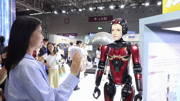 在文博会13号馆,数字华夏(深圳)科技有限公司的人形机器人“夏澜S01”与现场观众频繁互动。工作人员介绍,该款人形机器人头部有29个电机,可以做到7个种类22种表情。公司总经理陈军民介绍,这款“有温度”的AI人形机器人,表情丰富、颜值高,还有情绪价值。它的两个眼睛是摄像头,身上也有摄像头,传感器能识别人们的情绪并做出精准的反馈。