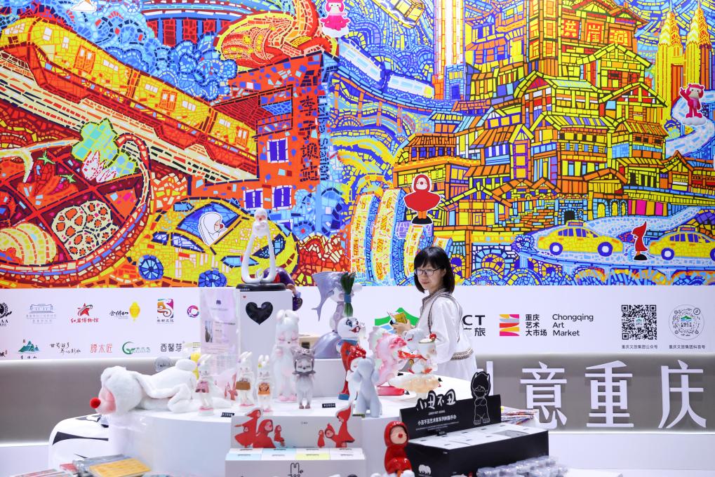 5月22日,观众在文博会重庆展台了解文创产品。新华社记者梁旭摄
